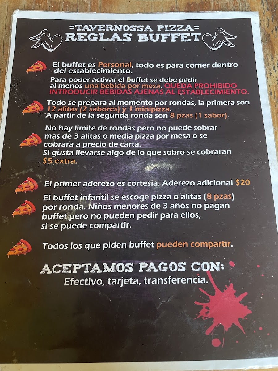 Indulge in their unique combo options, such as the La Sin Hueso, which pairs a traditional pizza with succulent boneless wings, catering to both casual diners and families. The ambiance is inviting, ideal for group gatherings, with attentive service adding to the pleasant experience. Customers rave about the flavorful boneless, particularly the generous portions and the admirable environment that encourages connection over food. Tavernossa Pizza stands out not just for its delicious offerings, but for a warm dining atmosphere that keeps you coming back.